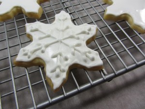 シュガークッキーはかための生地でできています。膨らんだり広がったりする生地では形が変わってしまうのでデコレーションがしにくいからです。生地を作るときにあまり空気が入らないように混ぜすぎないのが秘訣です。バターがたっぷり入ったさくさくのシュガークッキーはそのままでとても美味しいです。シンプルなだけに味のごまかしがきかないこのクッキー、ここはマーガリンで代用せずにぜひバターで。できるだけいい材料を選びましょう。デコレーションはそのまま型を抜くだけでも、目の粗いキラキラのサンディングシュガーをかけるだけでももちろんOKですが、時間があればぜひアイシングを。いつものクッキーがぐんと華やかになります。いろいろな色に染めたアイシングでクッキーを飾るのは、お友達や家族と一緒にするとより一層楽しいかもしれません。一方、夜中に一人で内職のようにデコレーションするのも格別ですが(←これわたし)。