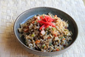 熟したバナナをつぶして、ヨーグルト入りの生地に混ぜ込んで焼く、フワフワのパンケーキ。ハワイに旅行した時に、マカデミアナッツ入りのバナナパンケーキを食べて美味しかったのを覚えていますが、ここではくるみを入れてみました。うちでは、バナナが熟しすぎると、バナナブレッドにするか、このバナナパンケーキにしていただきます。