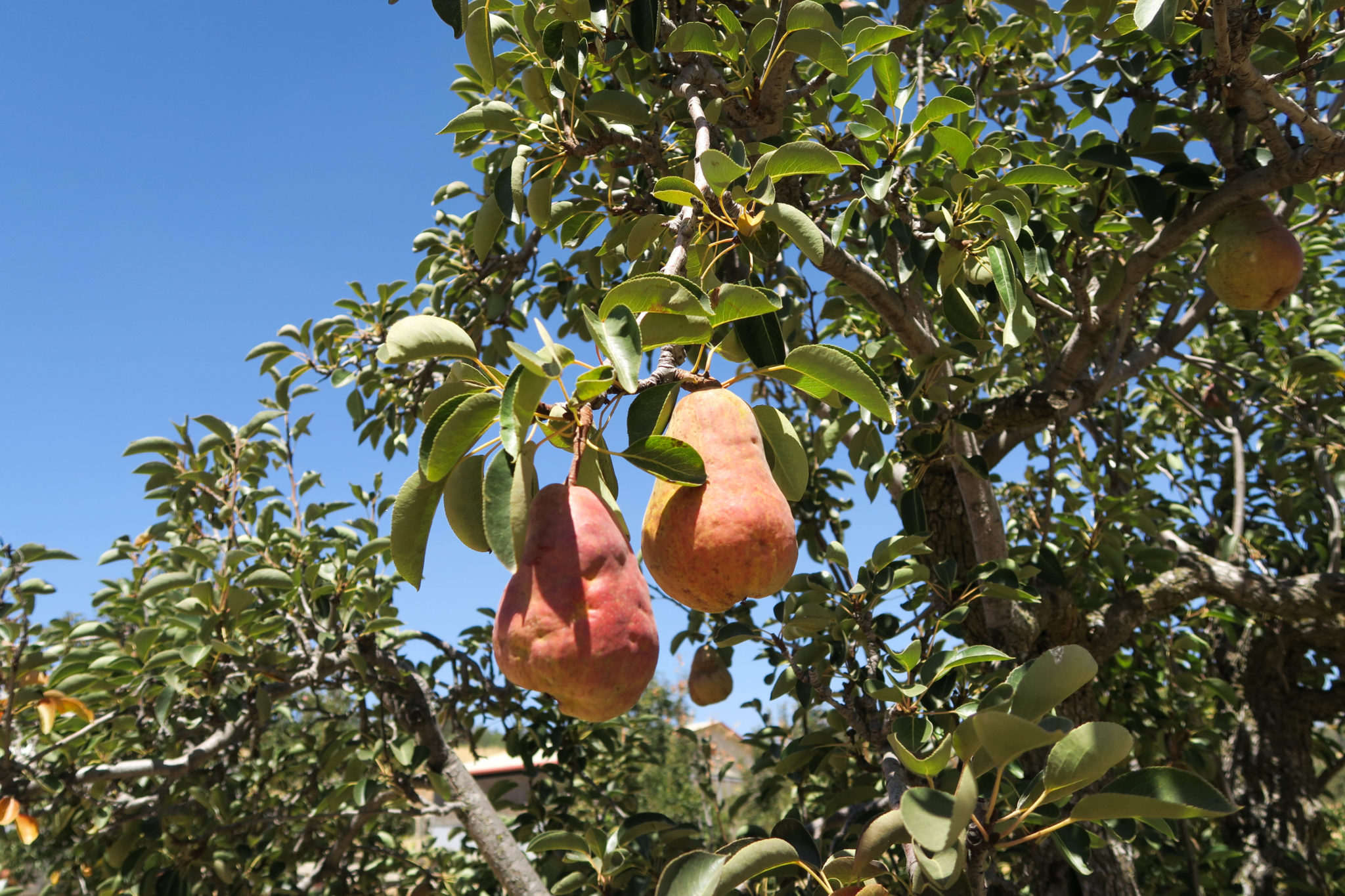 車でほんの一時間ほど東へドライブするだけで、そこはのどかな田舎。地元の人達の間では、ジュリアンといえばアップルパイ!なのですが、この季節人気なのが袋いっぱいに取らせてもらえるりんごや梨狩り。こんなところでもカリフォルニア州の深刻な干ばつの影響で、数年前に来た時と比べてりんごの数の少ないこと。もともと小ぶりでちょっと酸っぱいかなという感じのジュリアンのりんご、パイにできればいいなあと思っていたのが、あまりの不作で今年は断念。でも、梨はたくさんありました!私たちの入った梨農園は、すべてオーガニックの梨で、一袋10ドルで袋に溢れるまで取らせてもらえました。それと、味見も自由。「木からポロンと落ちそうなのが甘いよ〜。農薬かかってないから、そのまま食べてもいいよ!」との農園オーナーの老夫婦のお言葉に甘え、みんな取っては食べ、取っては食べ、梨でお腹いっぱいになりました。木で完熟する梨はやっぱり美味しい!熟れた梨は丸ごと数個ずつその場でいただき、固めのを袋に入れて持ち帰りました。